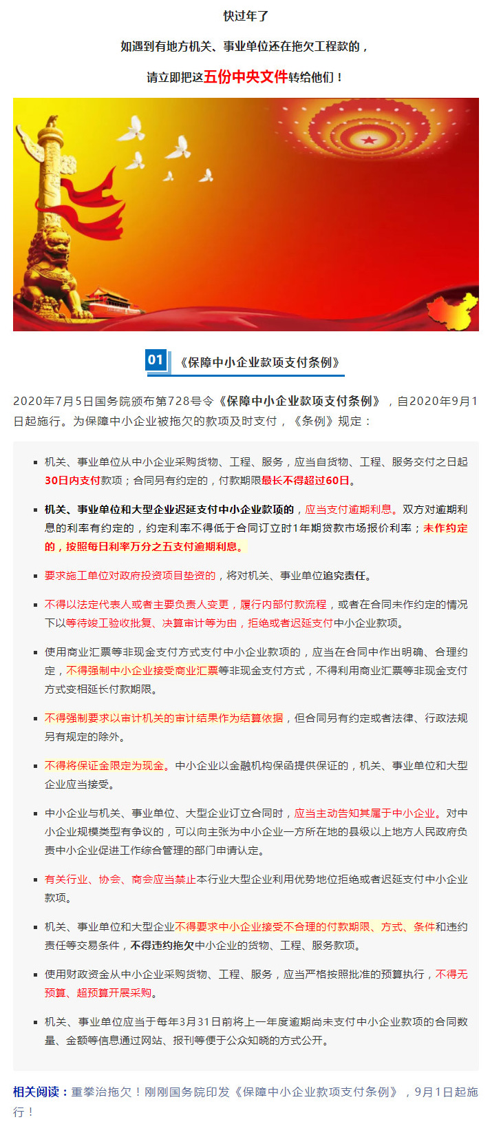 1. 快過年了,請把這5份中央文件轉(zhuǎn)給還在拖欠工程款的機(jī)關(guān)/單位!
